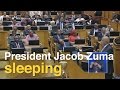 Parliament’s cameras caught South African President Jacob Zuma sleeping an hour and 14 minutes into Finance Minister Pravin Gorhan’s mid-term budget speech on Wednesday, October 26th.